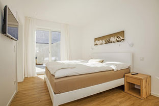 2 Schlafzimmer mit Doppelbett (jeweils 1 Bett / 2 Matratzen), Memoryschaum-Matratzen und Zirbenkissen, offene Bettfüße & viel Stauraum im Kleiderschrank, Bettwäsche inklusive